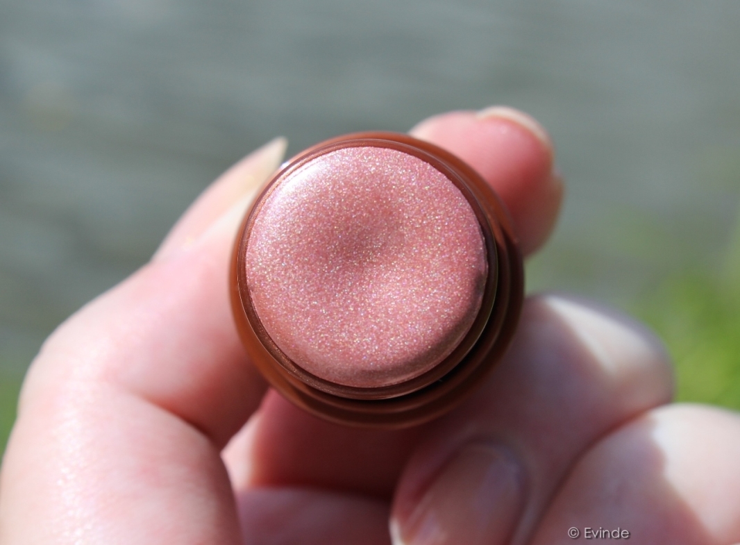 This guy is a burnt pinky nude cream blush. It is packed with subtle shimmer that shows up on the skin as a subtle glow rather than shimmer pieces. I recommend swirling your finger on it to warm it up, and then apply it to the cheek with gentle patting motions, so it doesn't disturb the foundation underneath.